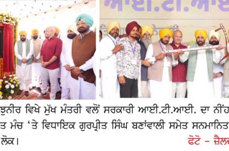 ਸਰਦੂਲਗੜ੍ਹ - 24 ਢਰਵਰੀ 2026 (ਪ੍ਰਕਾਸ਼ ਸਿੰਘ ਜ਼ੈਲਦਾਰ) ਮੁੱਖ ਮੰਤਰੀ ਪੰਜਾਬ ਭਗਵੰਤ ਸਿੰਘ ਮਾਨ ਨੇ ਮਾਨਸਾ ਦੇ ਝੁਨੀਰ ਵਿਖੇ 5 ਏਕੜ ਜ਼ਮੀਨ